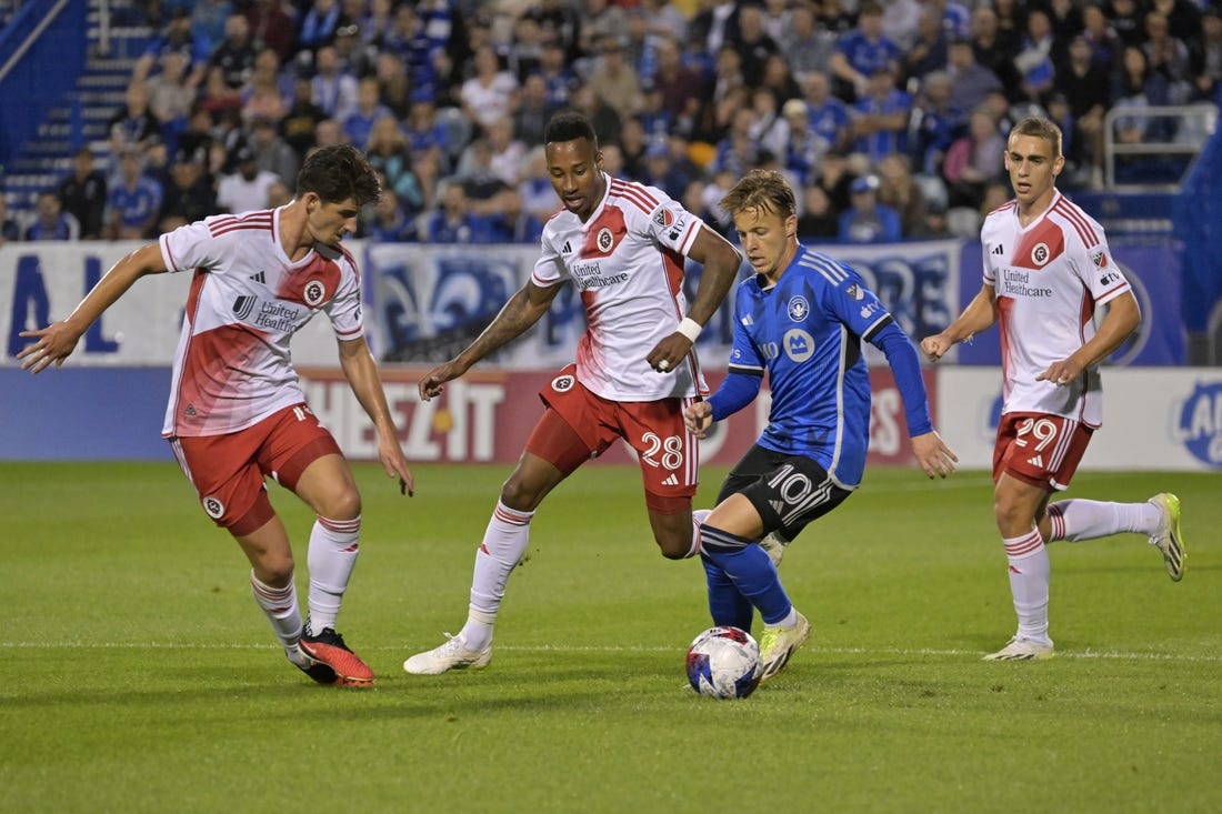 Carles Gil came close to giving the Revolution the lead in the 30th minute when, while battling Montreal defender Joel Waterman, he tried for a shot from outside the 6-yard box that hit the post.