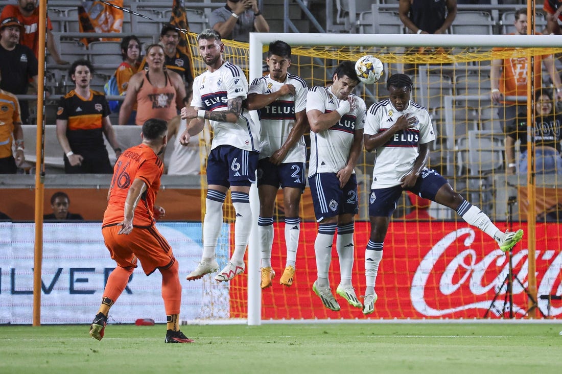 Herrera got Houston on the board in the 13th minute, converting a free kick from just outside the box after Nelson Quinones drew a foul from Javain Brown. Herrera’s kick bounced off Brian White in the Vancouver wall and wrong-footed Whitecaps goalkeeper Yohei Takaoka before landing in the bottom right corner.