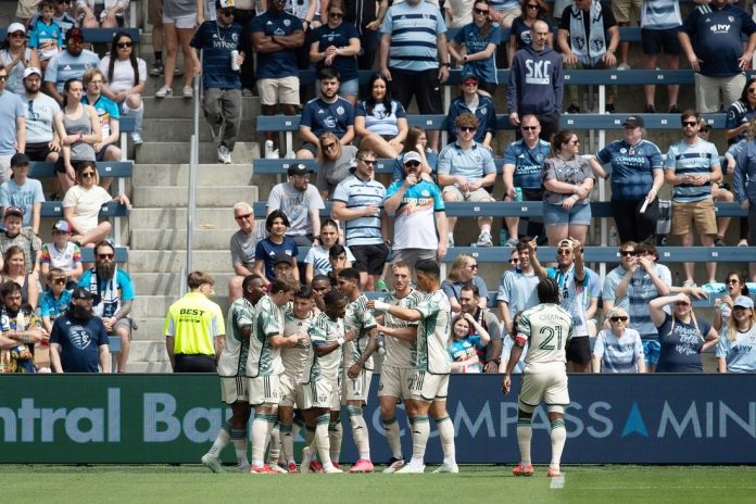 Kevin Kelsy scored his second and third goals and also created the sequence leading to an own goal in his side’s favor as the visiting Portland Timbers defeated Sporting Kansas City 4-2 on Sunday.