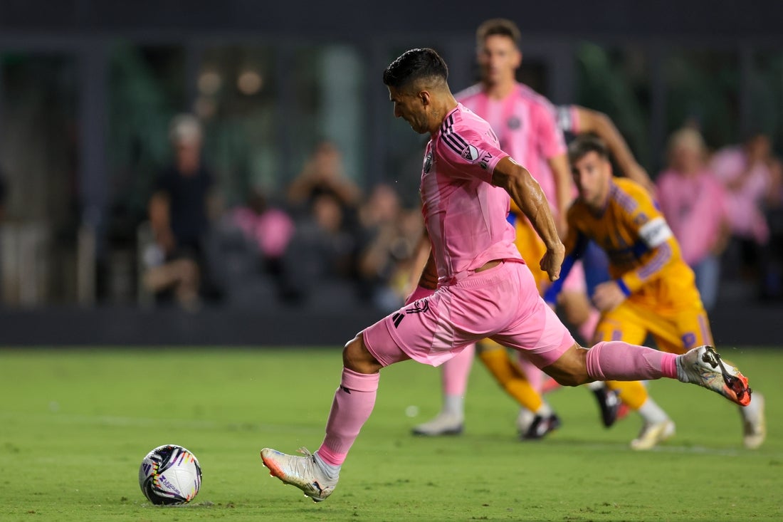 Luis Suarez converted twice from the penalty spot, including an 89th-minute winner, and Inter Miami overcame Lionel Messi’s injury absence to defeat Tigres UANL 2-1 in the Leagues Cup quarterfinals on Wednesday in Fort Lauderdale, Fla.