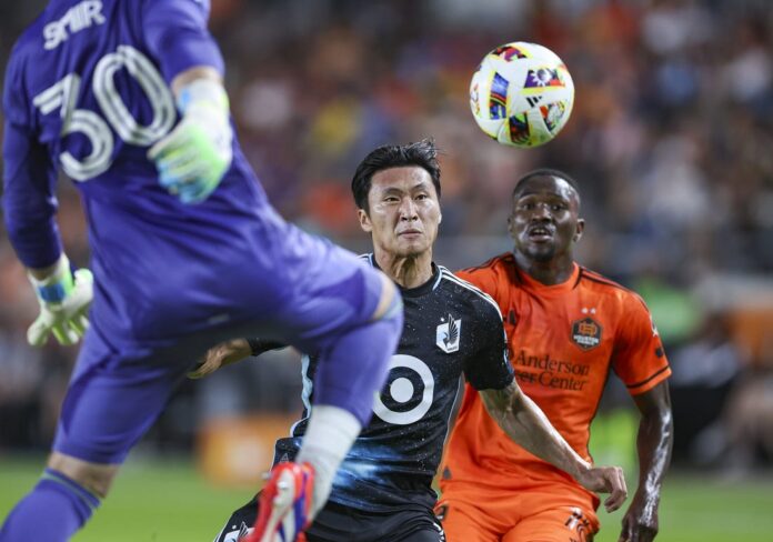 Following a 45-minute delay to start the match due to lightning in the area, Minnesota United had two good scoring chances in the fourth minute but came away empty-handed. Joseph Rosales had the first with a left-footed shot from the left side of the box that Clark turned away. About 30 seconds later, Bongi Hlongwane redirected a Sang Bin Jeong pass from the right side of the box off the right post.