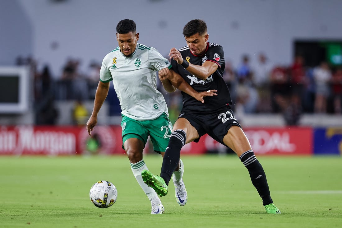 D.C. United’s penalty kick came when Keegan Rosenberry of the Rapids was called for a hand ball in the penalty area.