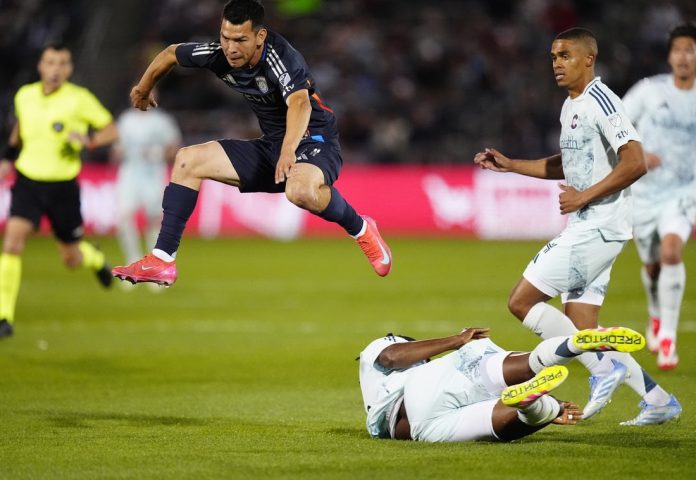 The Rapids padded their lead seven minutes later through Navarro, who played a suave give-and-go with Cole Bassett through the right side of the penalty area. He nearly lost his balance before he could finish the play off, but as he fell, he sent a right-footed finish off the inside of the right post.