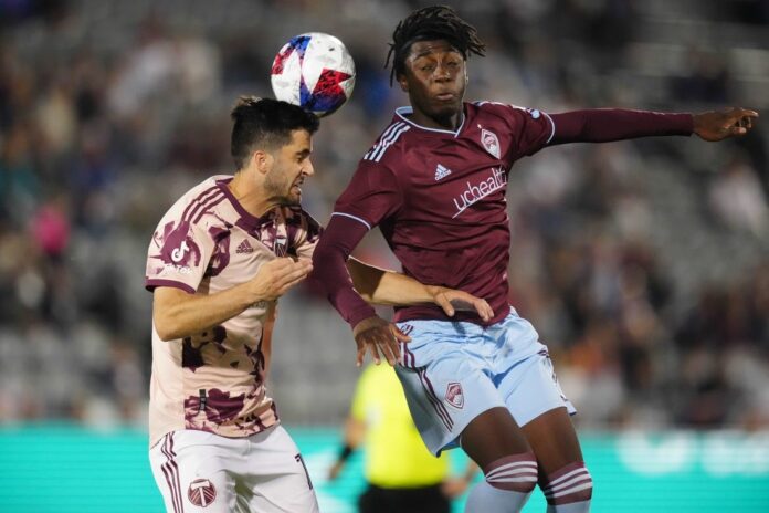 Colorado’s Lalas Abubakar had a chance in the 21st minute off a corner kick, but his spinning header was stopped by Portland goalkeeper David Bingham.