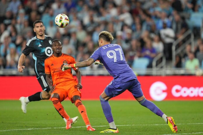 Minnesota came within inches of taking a 1-0 lead in the 34th minute. Teemu Pukki’s high press forced a turnover and Will Trapp picked up the loose ball and then booted a right-footed shot from the middle of the box that caromed off Clark’s left arm and landed on the goal line where Dynamo defender Ethan Bartlow swept it away before it could cross the line.