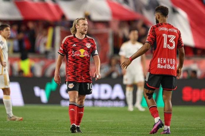 The Red Bulls’ 7-0 rout of the Los Angeles Galaxy on Saturday tied for the largest margin of victory in league history and tied New York’s club record for most goals in a single match. Eric Maxim Choupo-Moting and Emil Forsberg (two assists) led the onslaught with two goals apiece.