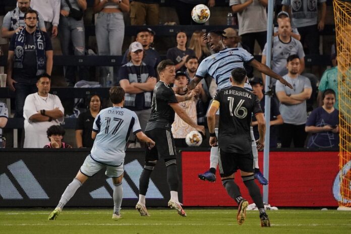 Willy Agada put Sporting up 2-0 in the sixth minute of first-half stoppage time. Khiry Shelton held the ball just outside the box. He fed Thommy, whose shot caromed off two Houston defenders before landing at Agada’s feet. Houston keeper Steve Clark had no chance at stopping it.