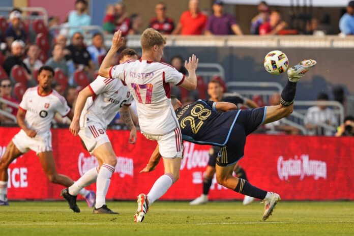 Tai Baribo gave Philadelphia a 1-0 lead off a set piece in the 39th minute. Kai Wagner served a free kick into the box, and Baribo got up for a header at the top of the goalmouth to send the ball inside the right post.
