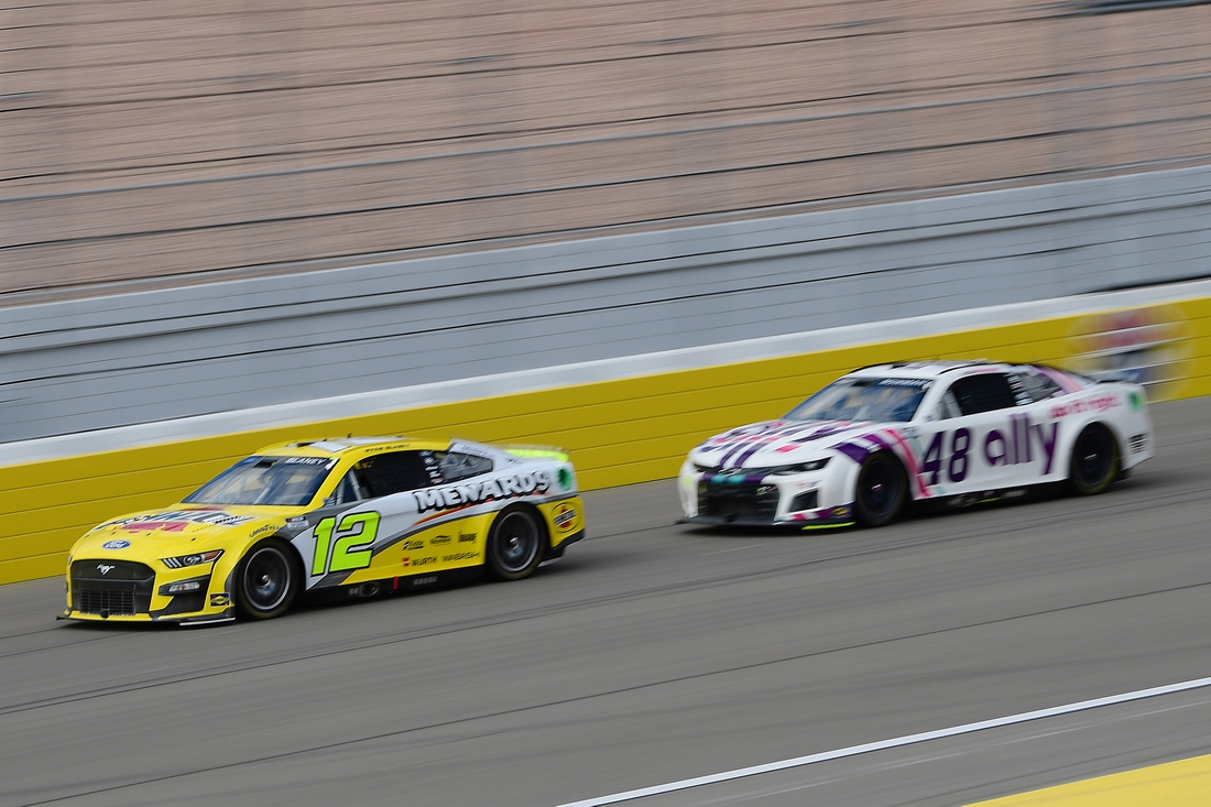 “He just spun out on his own, and I was on the top and ran right into him,” Blaney said. “He lost it right of front of us, I guess, and happy he’s still running (while) we’re sitting here wrecked.”