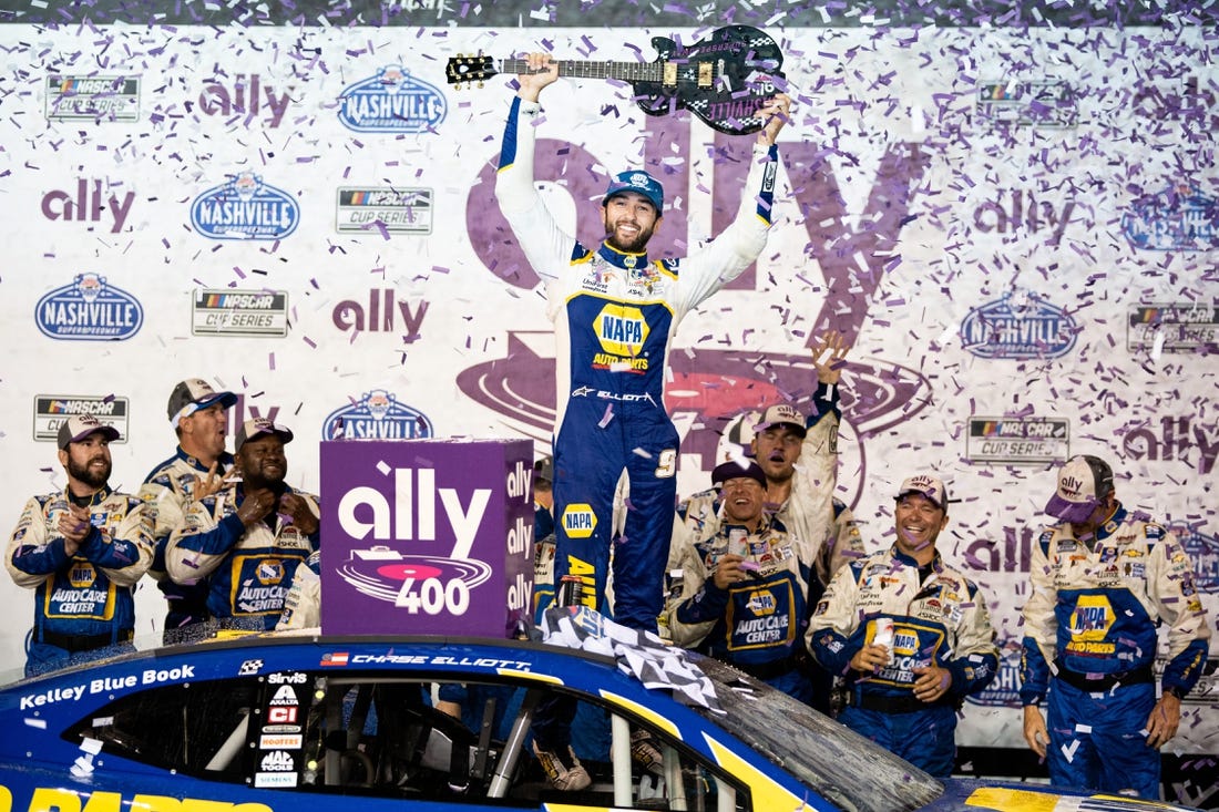 “We had kind of a setback there about halfway,” said Elliott, who matched his NASCAR Cup Series win total from last season. “We were able to get our NAPA Chevy dialed back in and get back in the mix. It was a long day, a fun day.