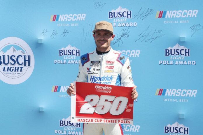 It is the 250th pole win for the venerable Hendrick team and marks the 13th different NASCAR Cup Series track where Larson has bested a qualifying session. It’s his 25th career pole overall.