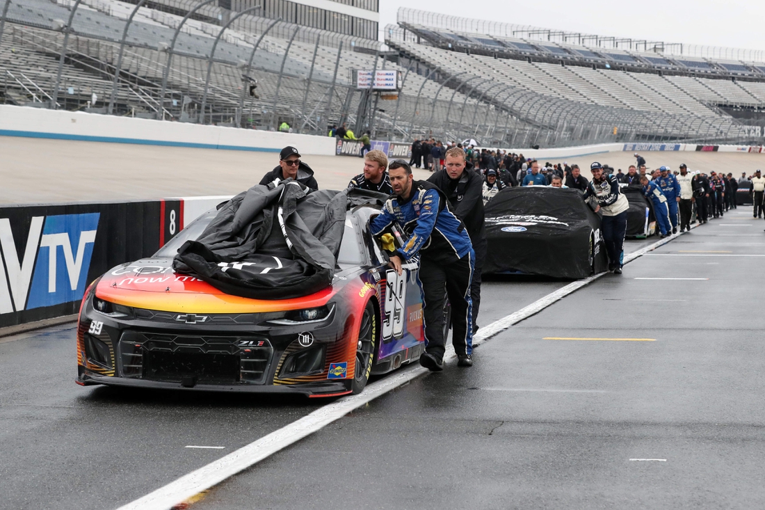 NASCAR sent the cars to pit road and the state-of-the-art Air Titan dryers worked to get the surface of Dover’s one-mile high-banks ready to race again. But the wet weather did not offer a window to complete the race before dark.