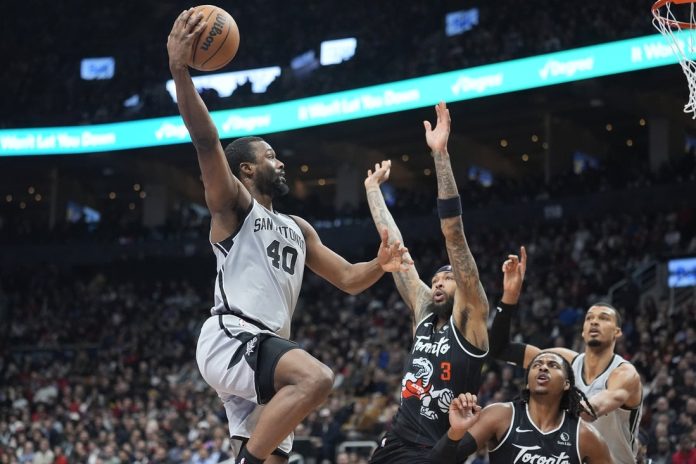 San Antonio outscored Toronto 32-17 in the final period after trailing by 15 late in the third.