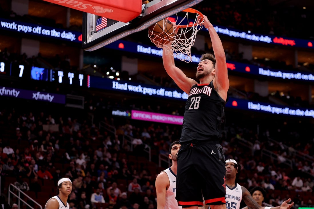 Sengun added nine rebounds and six assists to his ledger, and almost singlehandedly orchestrated the Rockets’ fourth-quarter rally after the Grizzlies led by as much as 10 points in the third. Sengun scored twice in the paint around a Dorian Finney-Smith 3-pointer, and his transition dunk at the 9:53 mark provided the Rockets with an 85-79 lead.