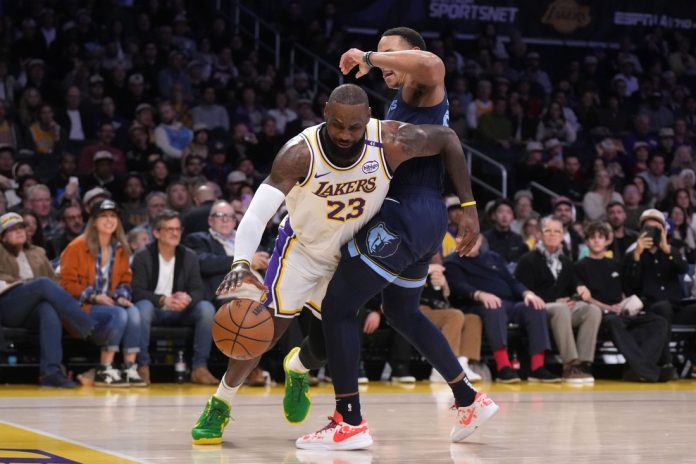 James got off to a fast start, dishing out two assists to Davis in the opening minute of the contest before following a thunderous slam with a chase-down rejection of Desmond Bane. He then scored on a tip-in to give Los Angeles a 9-2 edge.
