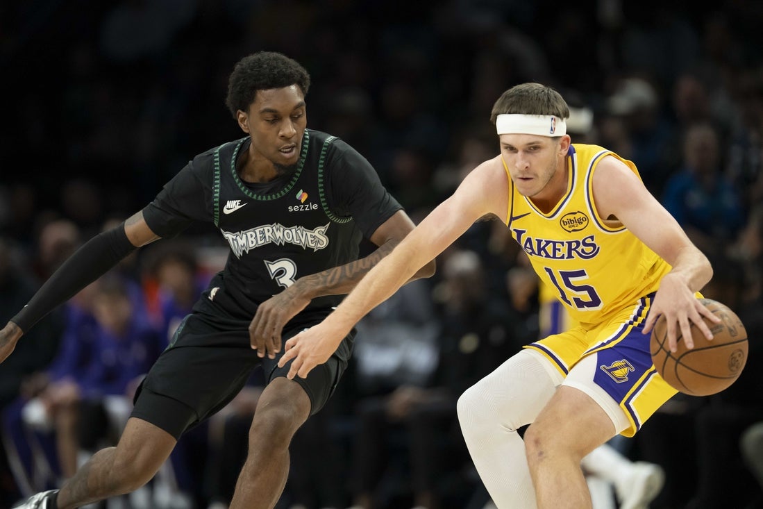 Austin Reaves made a driving jump shot at the buzzer to lift the Los Angeles Lakers to a 116-115 win over the Minnesota Timberwolves on Wednesday night in Minneapolis.
