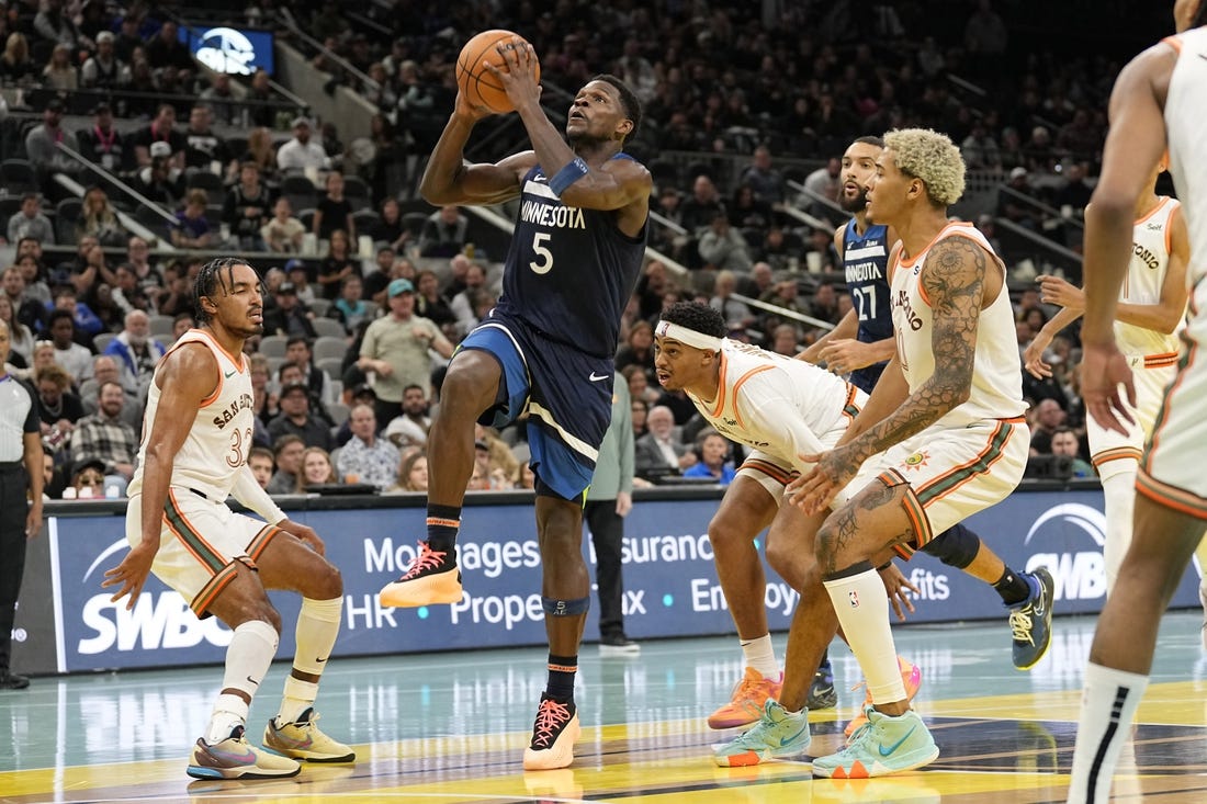 Minnesota won its fifth straight game and first away from home. The Spurs dropped their fourth consecutive outing despite 29 points by rookie phenom Victor Wembanyama.