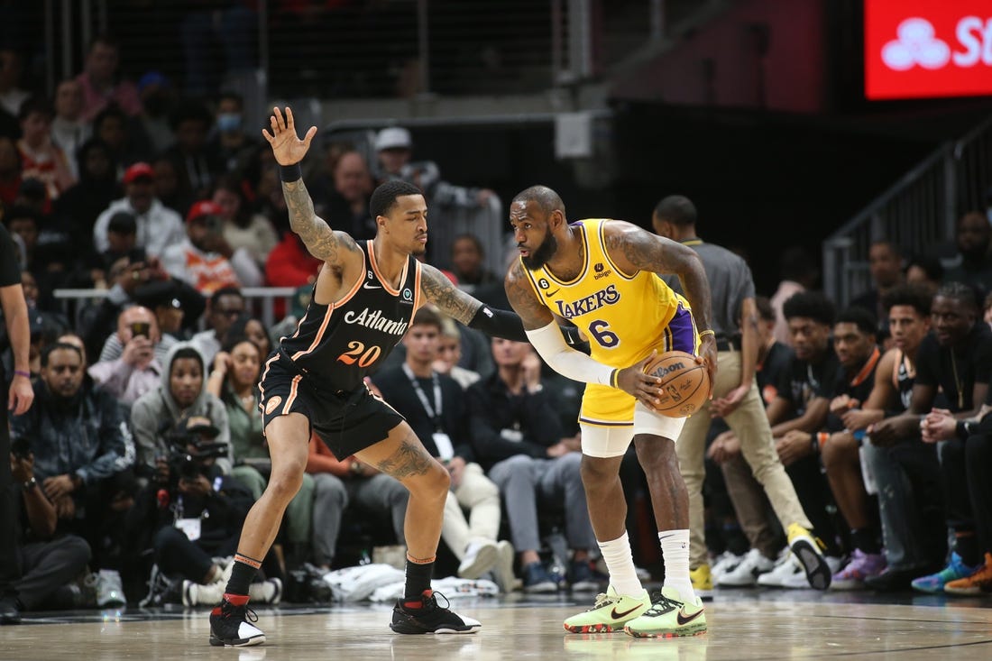 Atlanta led by as many as 15 points in the second quarter, but the Lakers — sparked by 16 points from James — cut the deficit to 67-62 entering halftime.