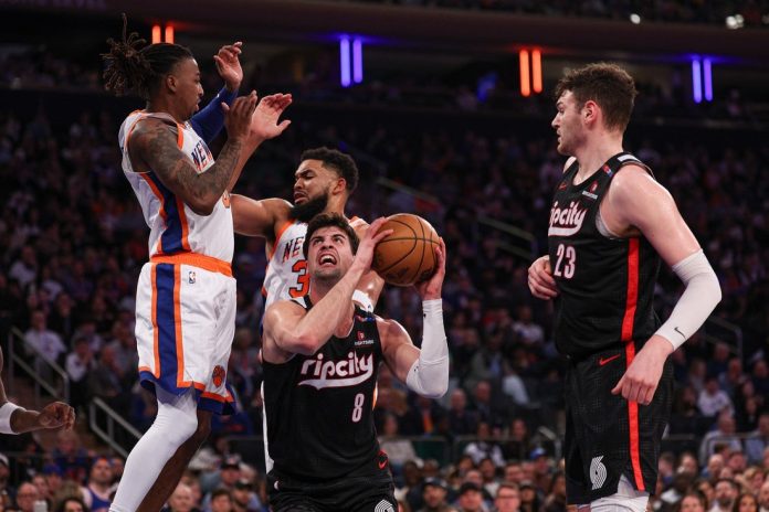 Atlanta-area product Scoot Henderson, Portland’s backup point guard, is in concussion protocol and did not play against the Knicks.