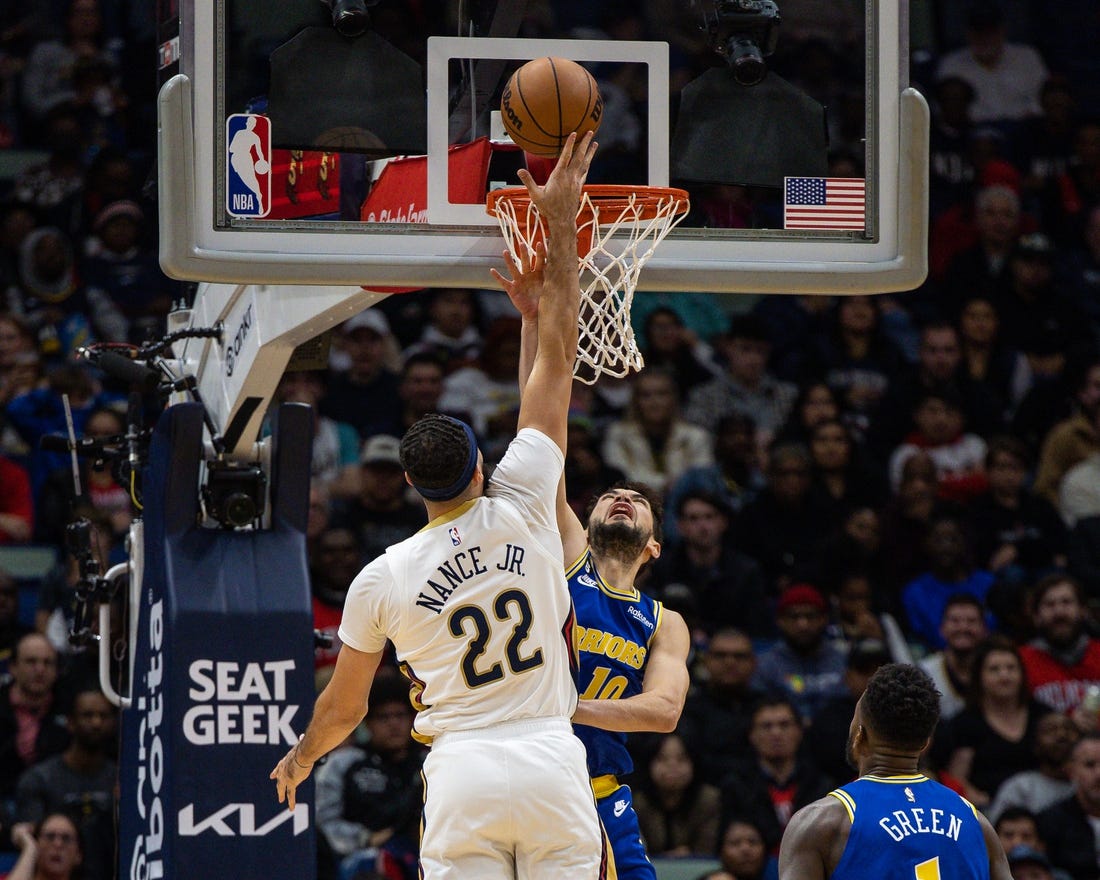 The Pelicans led by as many as 24 points before holding a 35-16 lead at the end of the first quarter. New Orleans didn’t turn the ball over in the period and the Warriors turned it over seven times, leading to nine points.