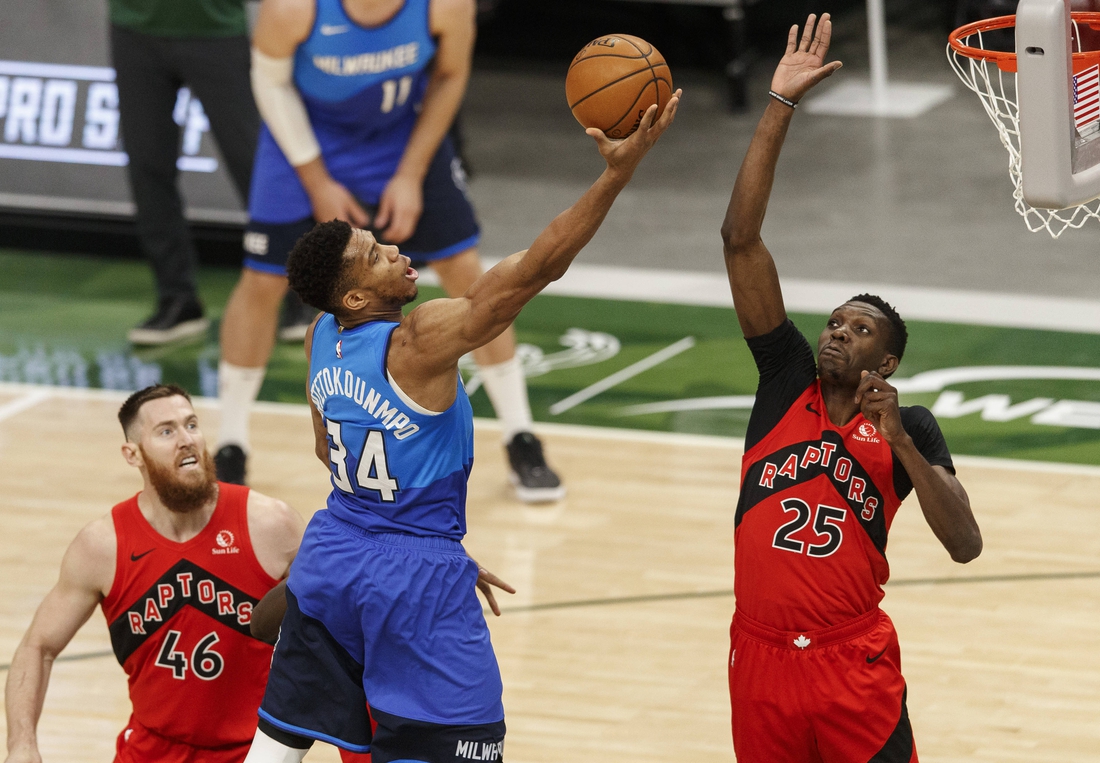 Giannis Antetokounmpo looks to continue his latest stretch of offensive dominance as the Milwaukee Bucks host the Toronto Raptors on Saturday night.