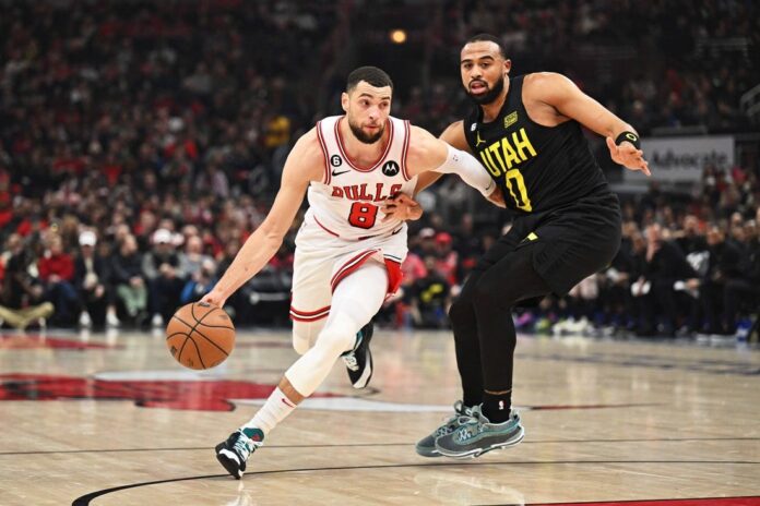 The Jazz jumped ahead early and held a 22-21 lead after an alley-top score by Markkanen when the Bulls seized control with an 11-2 push.