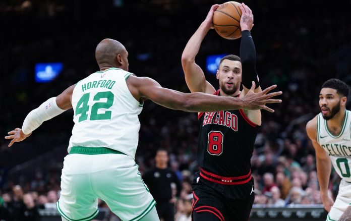 Zach LaVine tossed in a game-high 36 points and Nikola Vucevic added 16 points and 14 rebounds to lead the visiting Chicago Bulls to a 117-108 victory over the Boston Celtics on Thursday night.