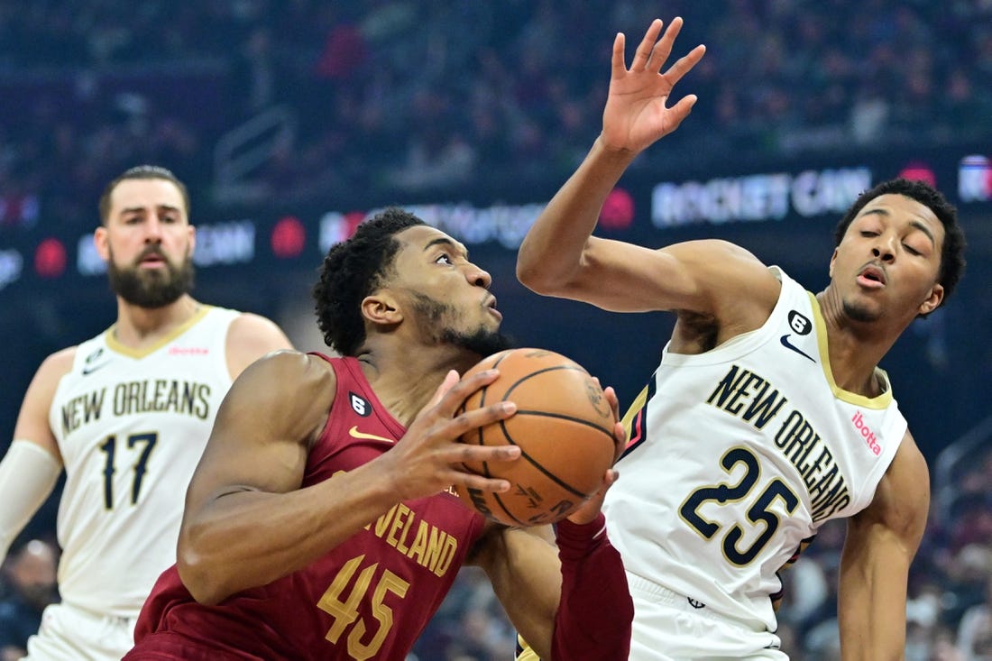The Pelicans scored the first seven points of the second quarter and extended the lead to 41-28, but the Cavaliers closed within three points after Mitchell made three free throws.