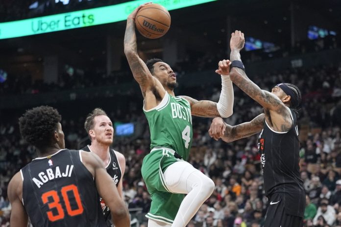The Celtics watched their 23-point lead shrink to six entering the fourth quarter. Lawson’s 3-pointer cut the lead to one, and Toronto took a one-point lead when Alijah Martin nabbed a steal to set up Jamal Shead’s layup with 10:39 to go.