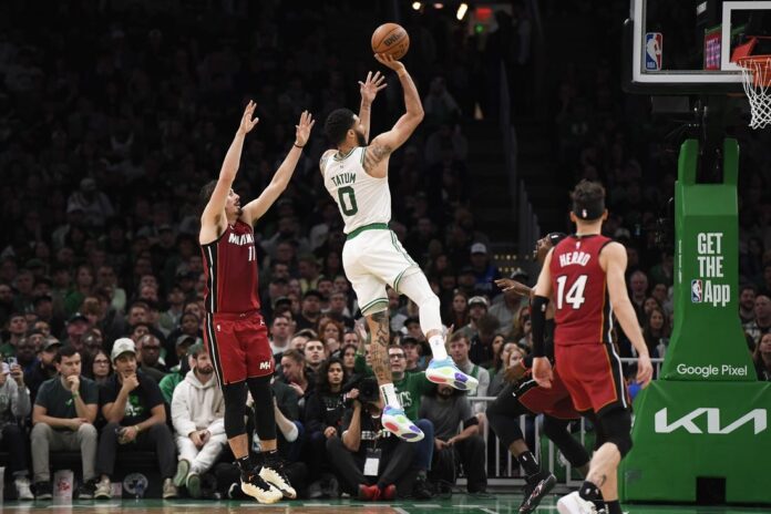 The top-seeded Celtics made 22 of 49 attempts from 3-point range (44.9 percent). All eight Celtics who saw playing time made a 3-point attempt. Eighth-seeded Miami was 12 of 37 (32.4 percent) from 3-point range.