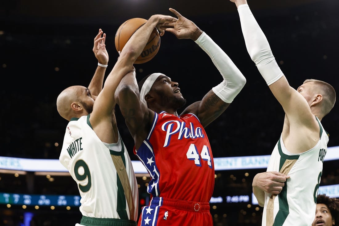 Kristaps Porzingis added 23 points and 12 rebounds for the Celtics, who made 34 of 37 free throws. The 76ers were 11 of 12 from the free-throw line.