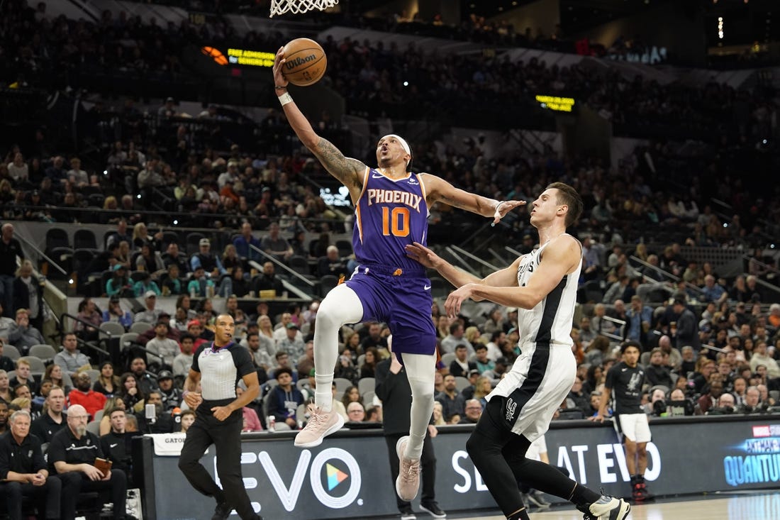 The Suns played without injured guards Devin Booker, Landry Shamet and Cameron Payne, while San Antonio was missing Josh Richardson and Romeo Langford.