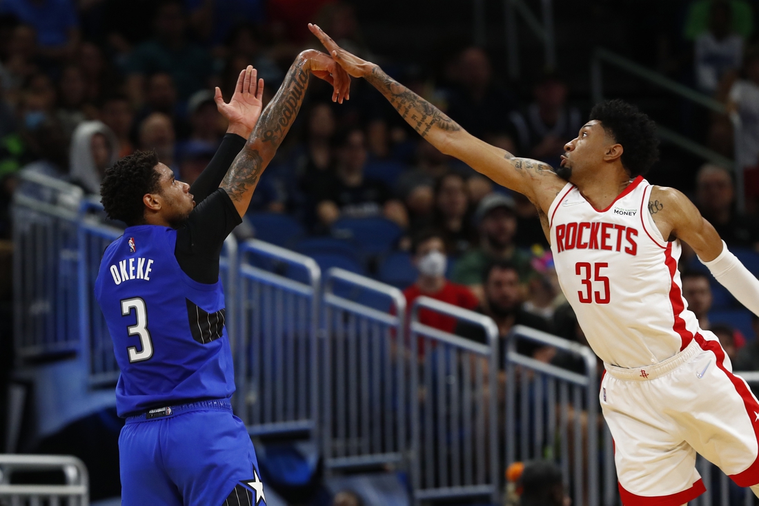 Okeke made 9 of 13 shots, including five 3-pointers, grabbed nine rebounds and had three steals as the Magic bench outscored its Houston counterpart 59-33. His triple with 9:55 remaining broke a 90-90 tie and started a 14-5 run that ended with Okeke dishing to Carter under the basket for a dunk.