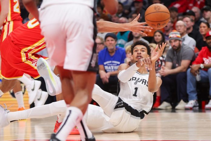 Atlanta’s Trae Young sank a floater with 8.5 seconds remaining to tie the game, but Onyeka Okongwu fouled Wembanyama on the next possession.
