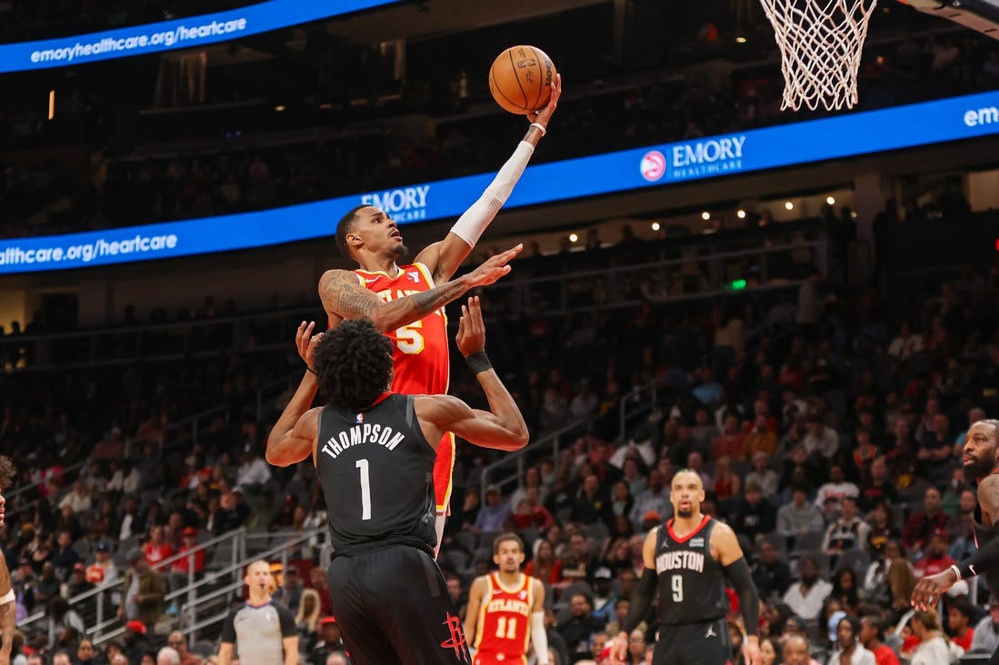 Atlanta looked to have the win all wrapped up after Bey’s fourth three-pointer of the game gave the Hawks a 118-109 lead with 1:59 left. Four straight points from Jalen Green cut the Houston deficit to five with 1:09 remaining, but that was as close as the Rockets would get.
