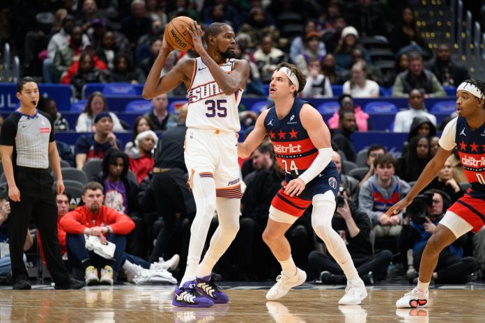 Devin Booker scored 37 points and Washington, D.C., native Kevin Durant added 23, fueling the visiting Phoenix Suns to a 130-123 wire-to-wire victory over the reeling Wizards on Thursday.