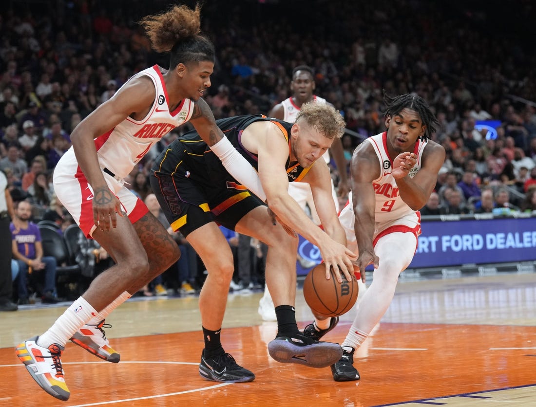 Booker was assertive early, hoisting 10 shots in the opening period while tallying 11 points. But the Rockets’ bench provided a collective effort to offset Booker, and when Tari Eason followed his second-chance basket with a layup following his steal, Houston pulled even at 21-21. Eason (nine points) added a 3-pointer down the stretch of the first, but Phoenix led 29-24 entering the second.