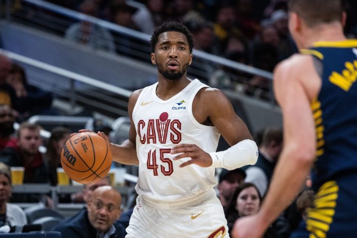 Donovan Mitchell scored 27 of his game-high 35 points in the first half, helping the Cleveland Cavaliers defeat the Indiana Pacers 127-117 in Indianapolis on Tuesday.