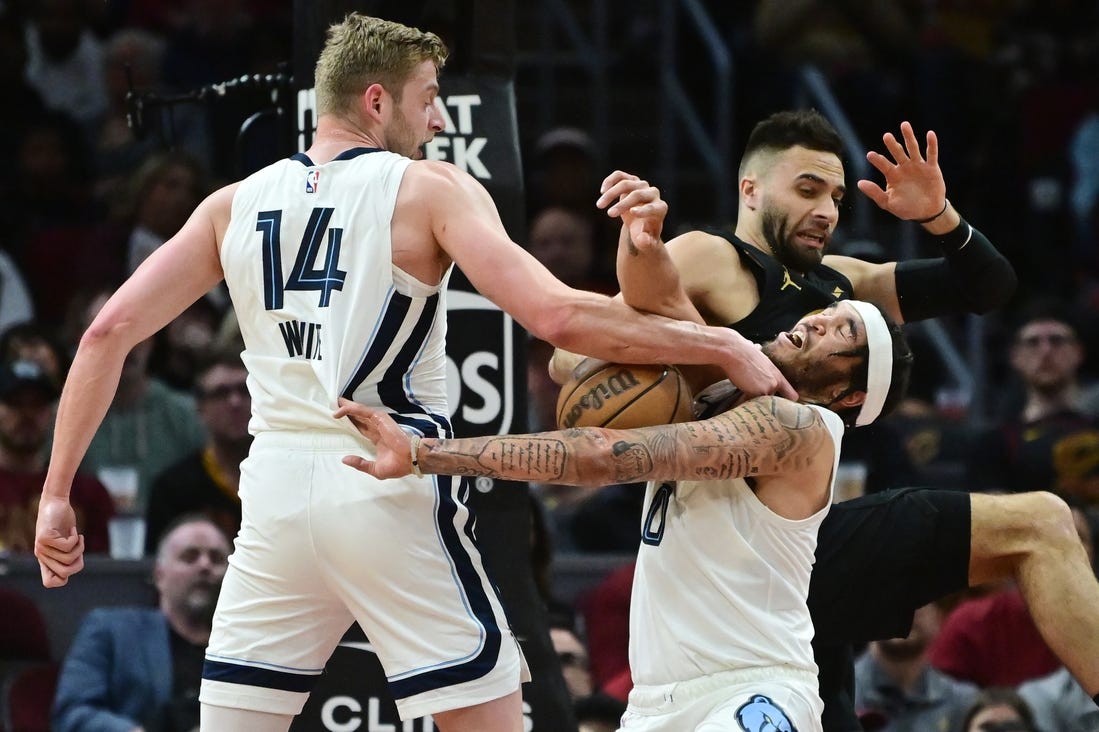 Garland hit a 3-pointer with 3:49 left to extend the lead to 104-84, and the Cavaliers went on to complete a two-game season sweep of the Grizzlies.