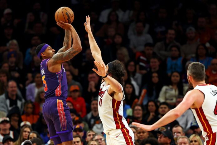 Allen made seven 3-pointers in the first half while scoring 23 points to help the Suns hold a 62-55 advantage. Phoenix scored the final eight points of the half. Adebayo scored 17 in the half for Miami.