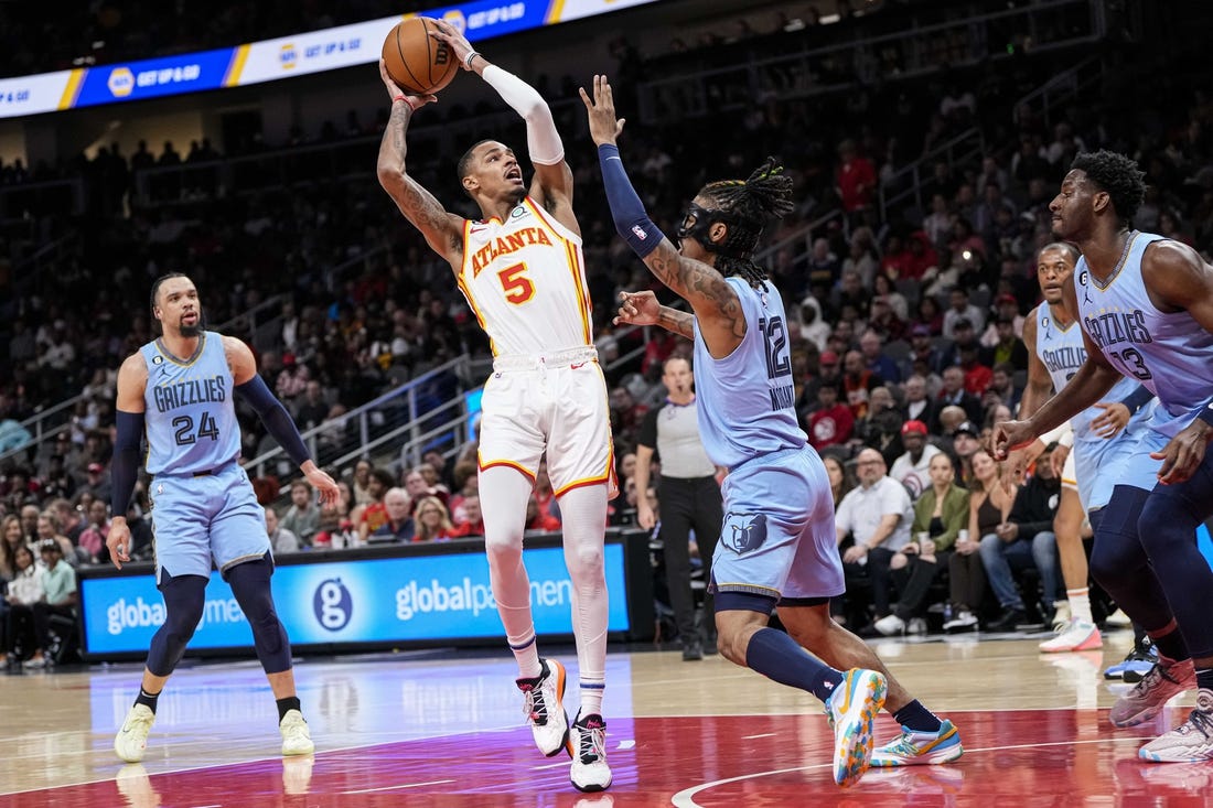 The first half ended when the Grizzlies’ Jackson blocked John Collins’ shot and knocked the forward to the court with six seconds left. Jackson was called for a foul and assessed a technical for arguing, as was Memphis coach Taylor Jenkins, who had to be restrained.