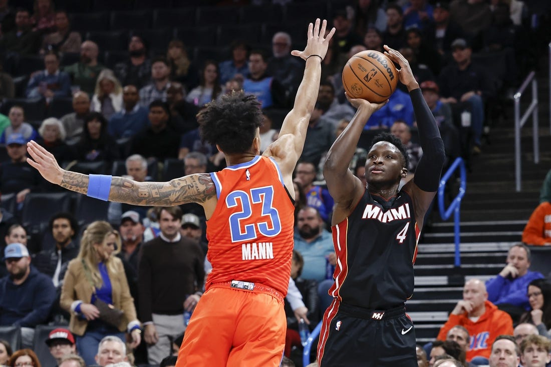 Miami has won the first two games of a four-game road trip while the Thunder have lost four consecutive games.