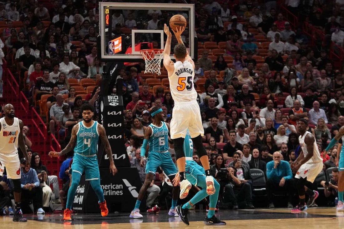 Miami ended up making 16 shots from 3-point range, while the Hornets were 9-for-31 from long range.