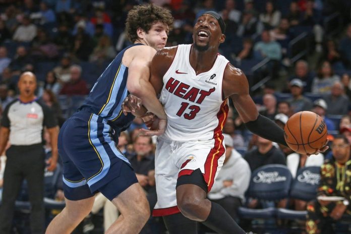 Bam Adebayo scored 18 of his game-high 24 points in the first quarter and visiting Miami set a record for most points allowed by a Memphis Grizzlies opponent in regulation during a lopsided 146-114 victory Friday night.