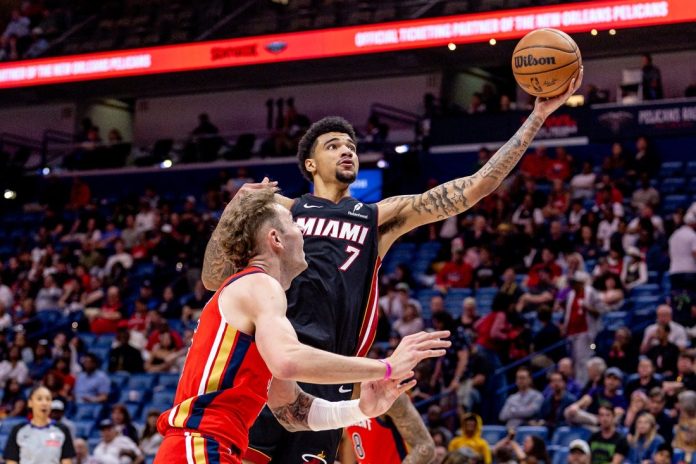 Robinson scored six points as the Heat matched their biggest lead of 17 points. Cain made two 3-pointers, Alvarado had a 3-pointer and a three-point play and Lester Quinones added a 3-pointer during a 17-5 run that pulled the Pelicans within five points.