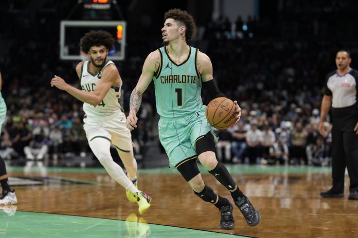 The NBA fined Charlotte Hornets guard LaMelo Ball $100,000 Sunday for using “offensive and derogatory” language during a postgame TV interview.