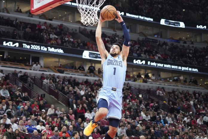 Morant injured his right hip in a Nov. 6 game against the Lakers and appears closer to returning. He was listed as doubtful before Saturday’s game in Chicago and questionable for Monday’s contest. Smart, battling an illness, missed his fourth straight game. Edey remains sidelined by an ankle injury he suffered in last weekend’s game against Denver.