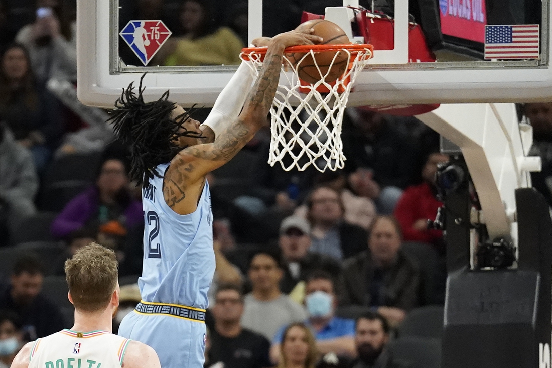 Jackson added 22 points for the Grizzlies, with Desmond Bane hitting for 20 and Ziaire Williams scoring 11. Memphis has won two of its past three games and has taken the past six games against San Antonio.