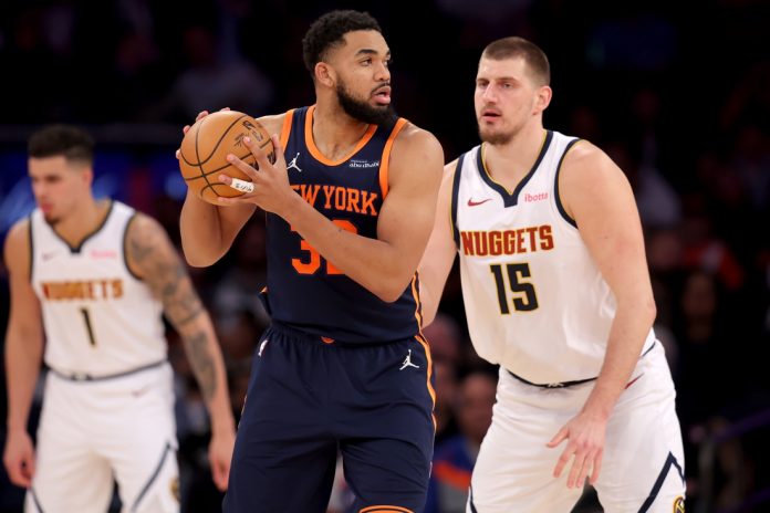 The Nuggets tied the score twice in the second — both times before Jokic re-entered with 7:14 left — and the Knicks led by as many as nine before entering the half with a 60-54 cushion.