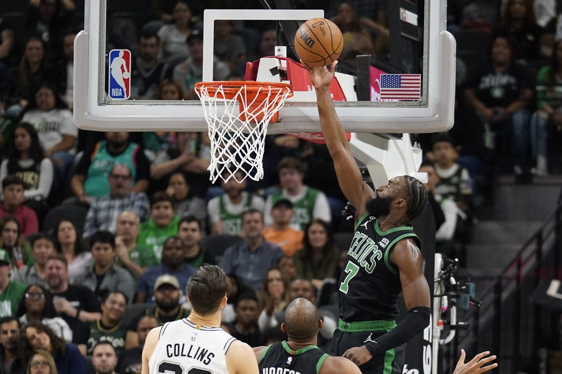 Brown led the Celtics with 18 points before halftime with Tatum hitting for 17 and Brogdon adding 11. Collins and Richardson paced San Antonio with 10 points each at halftime.